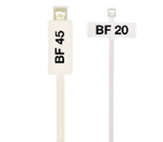» Bridas BF Bridas con campo de identificación: mediante bolígrafo de tinta china o rotulador permanente al agua. BF20 (Fig. derecha) Campo de identificación en el sentido longitudinal del cable BF45 (Fig. izquierda) Campo de identificación en el sentido transversal del cable.