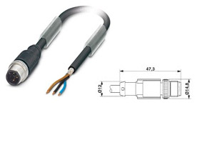 » Cable S/A: apantallado, conector M12 macho a conductor libre |