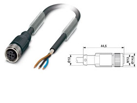 » Cable S/A: apantallado, conector M12 hembra a conductor libre |