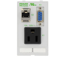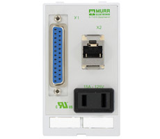 1 × NEMA 5-15 (concetor para soldar); 1 × RJ45, 8-posiciones metalica, CAT5e (hembra/hembra); 1 × SUB-D9 (hembra/macho)