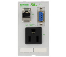 1 × NEMA 5-15 (conector para soldar); 1 × RJ45, 8-posición metalica, CAT5e (hembra/hembra); 1 × SUB-D9 (hembra/hembra)
