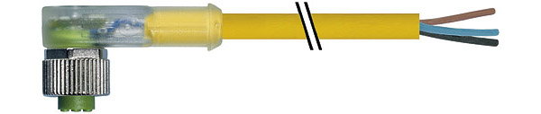 Características: » Hembra 90°, 5-polos, con extremo abierto, con 3 x LED.