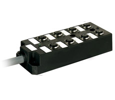 Características: » Distribuidor pasivo plastico, 8xM12,5pol,pre-wired cable 3.0m PUR-JB 16x0,34+3x0,75 Referencia: Art.-No. 27852