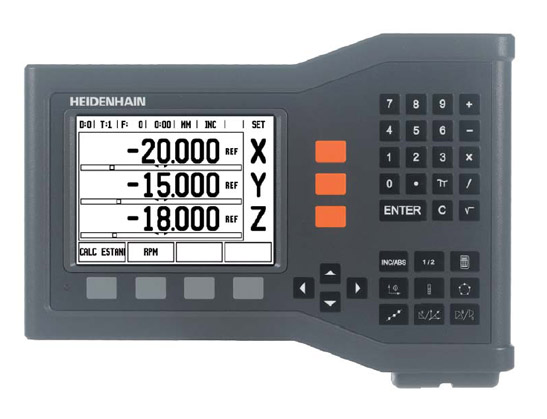 » ND 522 / ND 523 No importa si se trata de fresar, taladrar o tornear: los visualizadores de cotas numéricos de HEIDENHAIN siempre son la elección acertada para su máquina herramienta:• Mayor productividad Con los visualizadores de cotas de HEIDENHAIN Vd. trabajará con su máquina herramienta manual o equipo de medición de una forma más productiva: ahorrará tiempo, mejorará la precisión de las piezas acabadas y ganará en confort. • Producción rápida y segura Con los visualizadores de cotas numéricos de HEIDENHAIN se ahorra tiempo. Sencillamente desplazándose al valor de visualización cero con la visualización del recorrido restante se alcanza la siguiente posición nominal de forma segura y rápida. Los puntos cero de referencia se fi jan en la posición deseada. De esta forma se facilita el posicionamiento, sobre todo en piezas de acotación complicada. • Lectura clara La óptima visualización indica claramente las posiciones relacionadas con el punto de referencia seleccionado. De esta forma se reducen errores de memorización y el mecanizado es más seguro. |